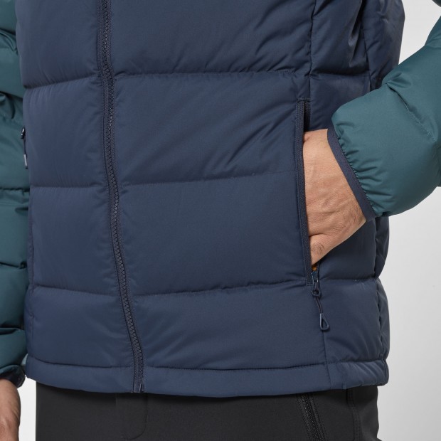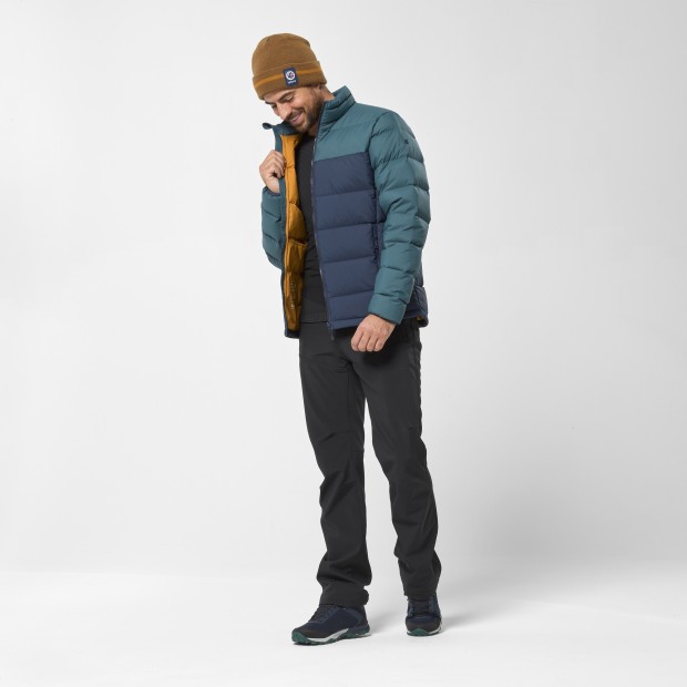 Páperová bunda s jednoduchým a elegantným dizajnom, ideálna na cestovanie, turistiku, ale aj každodenné nosenie. Hustota výplne 500 cuín v pomere 80/20 vás udrží v teple každý deň. Výplň bundy je 100% recyklované perie RE:DOWN.