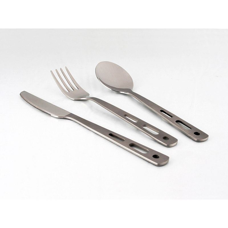 Osvedčený turistický príbor ideálny na kempovanie alebo cesty. Je vyrobený z nerezovej vysoko akostnej ocele. Súčasťou balenia je pútko pre zopnutie celého príboru k sebe.