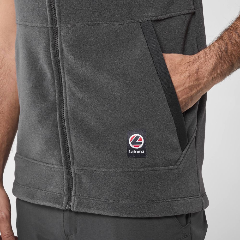 Pánska flisová vesta, ktorá je vyrobená zo zvyškov materiálov z predchádzajúcich sezón. Súčasť kolekcie LIMITED EMISSIONS, ktorou sa Lafuma snaží znížovať svoju ekologickú stopu. Česaný flis zvonku aj zvnútra, POLARTEC 200, je príjemný a teplý. Môžte ju nosiť samostatne, alebo zazipsovať do bundy, keďže vesta je kompatibilná so systémom LAFUMA MIX & MATCH. Vesta je praktický outdoorový kus odevu, ktorý využijete na turistike aj pri iných aktivitách. Pohodlný strih, vyvýšený golier, elastické manžety a 2 vrecká, ktoré vám zohrejú ruky.