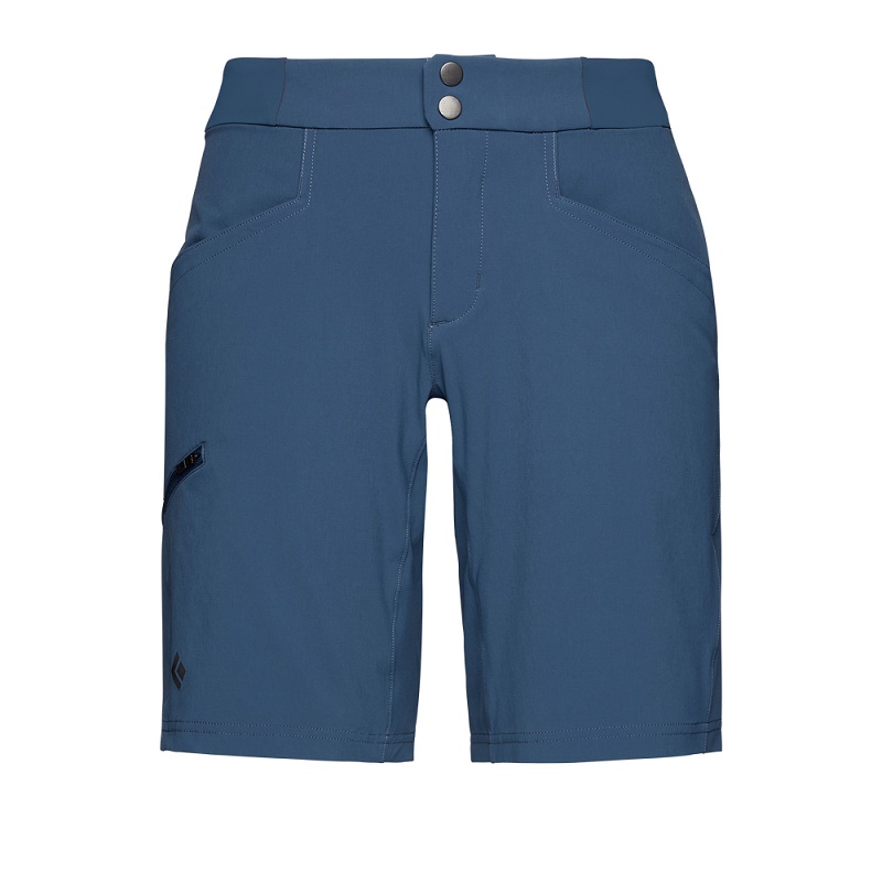 Ľahké dámske turistické aj lezecké šortky Black Diamond VALLEY. Ponúkajú dokonalé prispôsobenie ženskej postave vďaka strečovému materiálu. Obsahujú klinové výstuhy špecifické pre lezenie, stehenné vrecko na zips na uloženie základných vecí a dve predné vrecká.