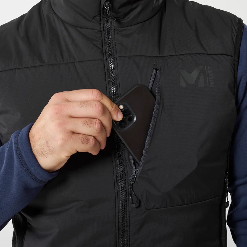Pánska vesta MAGMA HYBRID, ochrana pred vetrom a chladom pri turistike. Nositeľná samostatne alebo pod nepremokavou bundou, ponecháva vám voľnosť pohybu a prináša teplo vďaka recyklovanej izolácii Primaloft® Silver na prednej strane. Elastický fleece Polartec® Power Grid™ na chrbte a na bokoch podporuje pohodlie a tiež rýchlo odvádza vlhkosť, aby ste aj napriek námahe boli v suchu. Táto pánska vesta s priliehavým strihom so stojačikom a elastickými zakončeniami, ktoré poskytujú tesnú ochranu, má tri vrecká na zips, ktoré sú prístupné, aj keď máte sedací postroj.