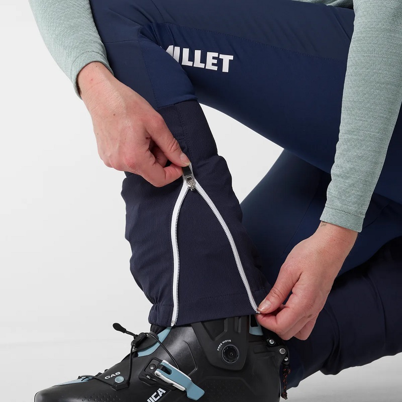 Dámske skialpové nohavice od firmy Millet z extra ľahkého a strečového materiálu. Je veľmi odolný voči oderu, vetruodolný a zároveň perfektne priedušný. Hybridná konštrukcia dodá potrebnú funkčnosť. Majú komfortný pás zo širokej gumy a vpredu sa dajú regulovať podľa individuálnej potreby. Zipsové zakončenie nohavíc s vnútorným klinom, ktorý je vybavený otvorom pre prístup k prackám na skialpových topánkach.