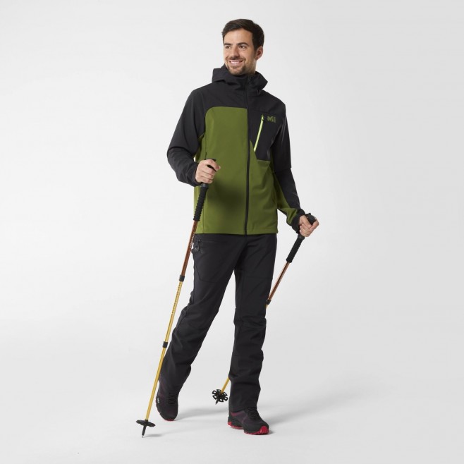 Pánska softshellová bunda MAGMA SHIELD HOODIE. Jej vodoodpudivý materiál ELEMENT SHIELD je príjemne pružný a poskytuje vetruodolný efekt, ktorý zabraňuje prechladnutiu pri zastavení alebo zostupe. Má mriežkovanú reliéfnu štruktúru a zvnútra jemne česaný materiál, čo optimalizuje prísun tepla aj odvod telesnej vlhkosti pre pohodlný pocit sucha. Nastaviteľná na kapucni a páse, má elastické manžety na lepšie udržanie tepla. Túto všestrannú turistickú bundu dopĺňajú tri vrecká na zips.