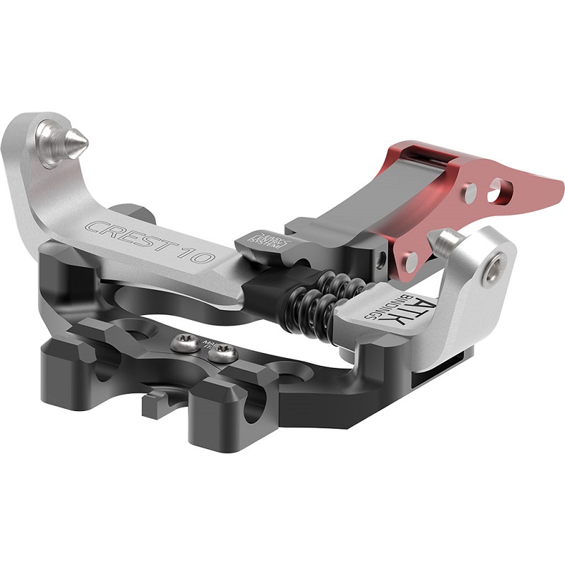 ATK Crest 10 je skialpové viazanie s najuniverzálnejším zameraním v kategórii skitouringových viazaní od spoločnosti ATK. Má extrémne nízku hmotnosť iba 280 g, ktorú oceníte pri dlhých výletoch a strmých stúpaniach. Vďaka vysokej pevnosti, bezpečnosti a presnosti sa nestratí ani pri najextrémnejších zostupoch. Nová brzda je neuveriteľne ľahká a ľahko ovládateľná a je k dispozícii v niekoľkých veľkostiach, ktoré sadnú na každú lyžu. Polohy medzi chôdzou a zjazdom môžete jednoducho prepínať stlačením tlačidla. Preklápací diel pätky ponúka 3 rôzne výšky chôdze: plochý režim, +36 mm a +50 mm, ktoré Vám pri šľapaní poskytnú komfort prispôsobený strmosti terénu, lyžiarke aj kroku.