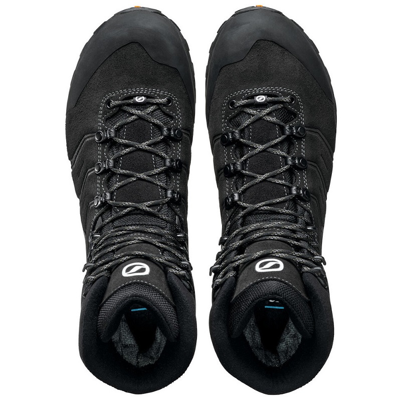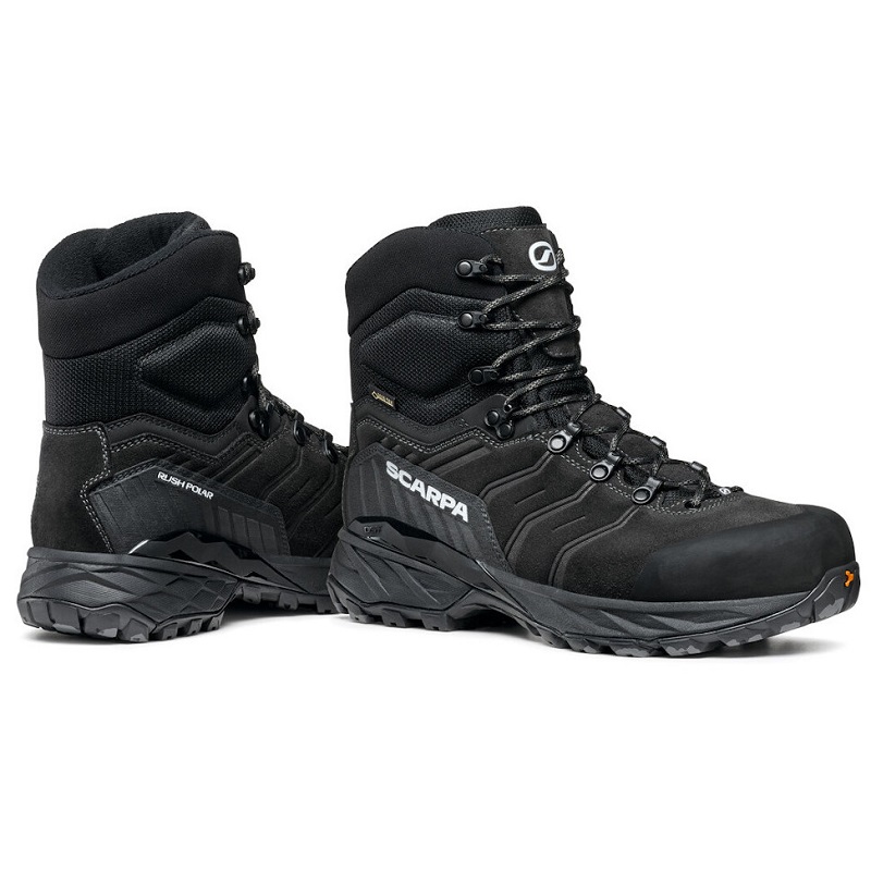 Pánska obuv Scarpa Rush Polar GTX na zimnú turistiku a výlety na snežniciach vo veľmi nízkych teplotách do -20°C. Zvršok je zo semišovej kože Perwanger® hrúbky 1,7 – 1,9mm s hydrofóbnym povrchom a vysokou odolnosťou proti škrabancom a inému poškodeniu. Nachádza sa tu nepremokavá membrána Gore-Tex® Duratherm a zateplenie PrimaLoft® Gold Eco, ktoré udržia chodidlá v suchu a v príjemnom teple. Kombinácia materiálov umožňuje nohám aj dýchať. Okolo členku je obuv pevnejšia a odolnejšia pre lepšiu ochranu a stabilitu a vystužený golier s Autofit 3D technológiou zvyšuje pohodlie a taktiež stabilitu tým, že sa výborne prispôsobí nohe, jej pohybom a pevne drží obuv na mieste. Prepracované šnurovanie umožňuje zvlášť dotiahnuť spodnú a vrchnú časť a pevne fixovať obuv. Podrážka Presa® TRK-02 zo zmesi Supergum W, ktorá je určená do zimných podmienok a poskytne trakciu aj v zasneženom a zľadovatelom teréne. Päta je prispôsobená na čo najlepšie brzdenie pri zostupoch a špička na trakciu a odraz. Technológia Interactive Kinetic System predstavuje 7 oblastí v podrážke, ktoré progresívne tlmia nárazy a podporujú distribúciu hmotnosti človeka pri nárazoch pre lepšiu stabilitu a pohodlie.
