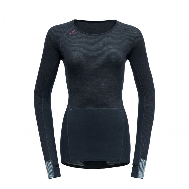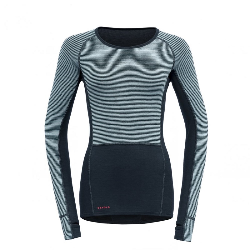 Dámske obojstranné funkčné vlnené tričko značky Devold, ktoré je vyrobené kombináciou troch rozdielnych úpletov. Prvá strana má vysoký úplet ku pokožke, ktorý v sebe udržuje viac vzduchu a zvyšuje tým tepelný komfort. Druhá strana je tvorená hladkým úpletom, ktorý zaistí vysokú priedušnosť. Klasický rebrovaný úplet je použitý v teplých oblastiach tela ako je brucho a spodná časť paží. Je veľmi ľahký pri zachovaní tepelno izolačných schopností. Absorbuje vlhkosť a udržuje telo v suchu počas pohybu. Rýchloschnúci sieťovaný úplet zaistí rýchly odvod vlhkosti od tela. Nájdeme ho na najviac potivých častiach tela ako sú chrbát a podpazušie. Tričko využijete pri zimných aktivitách, či už pri zjazdovom lyžovaní, na bežkách alebo skialpe či snowboardingu. Ideálne v kombinácii s nohavicami Tuvegga Sport Air Long Johns Women.