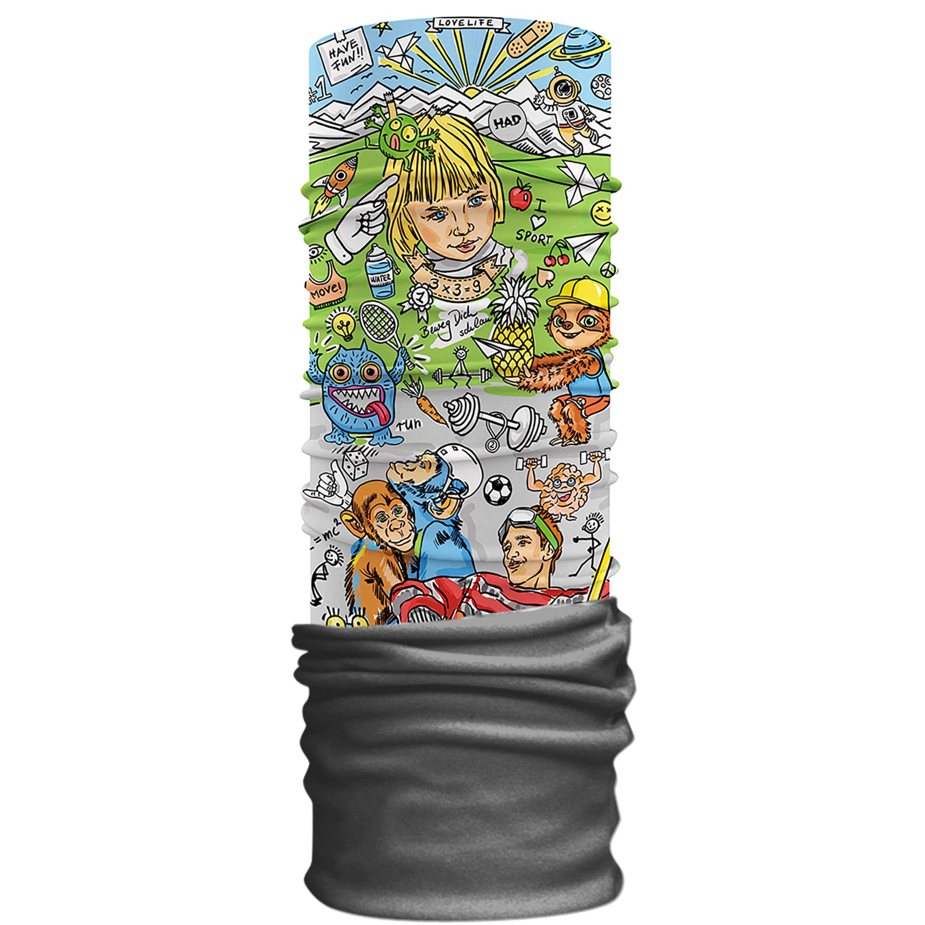 Fleecová multifunkčná šatka pre deti, ideálna na zimné outdoorové aktivity ako napr. lyžovanie, snowboarding, či turistika.
