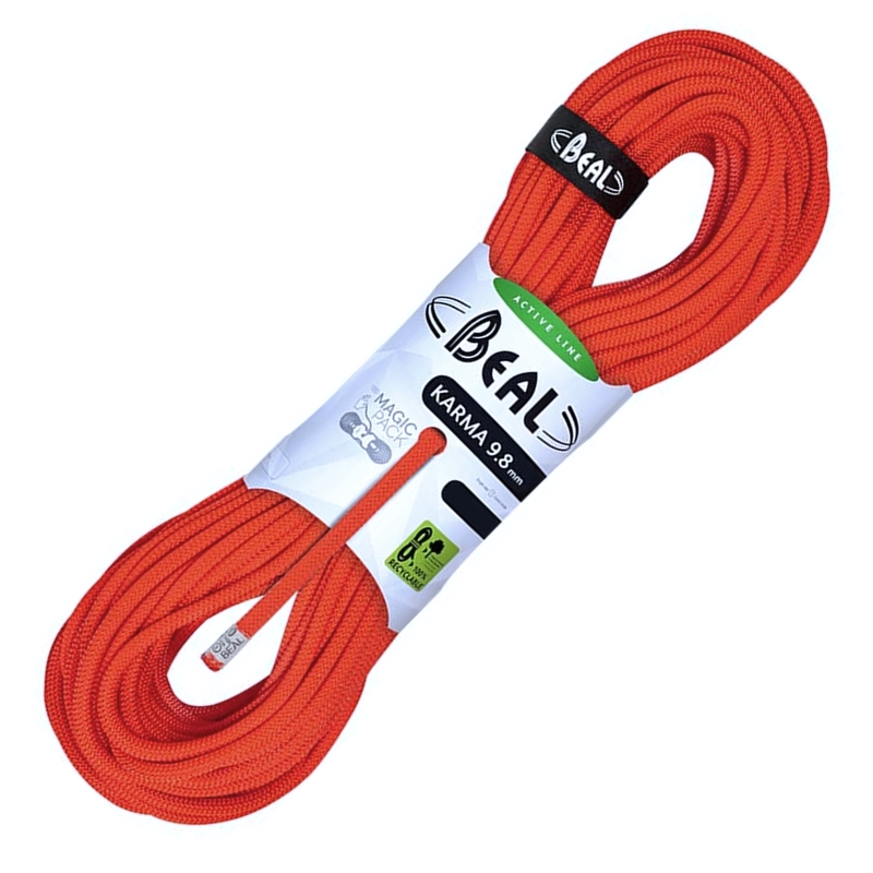 Dynamické lano Beal Karma s priemerom 9.8 mm na športové lezenie. Ponúka výbornú manipuláciu a výborný pomer medzi kvalitou a cenou. Karma je súčasťou rady lán Beal Active. Ide o laná bez chemického ošetrenia plášťa alebo jadra, konštrukčne sú ekologickejšie. Beal využíva svoju vlastnú technológiu výroby tak, aby malo lano Karma vysokú absorpciu nárazu.