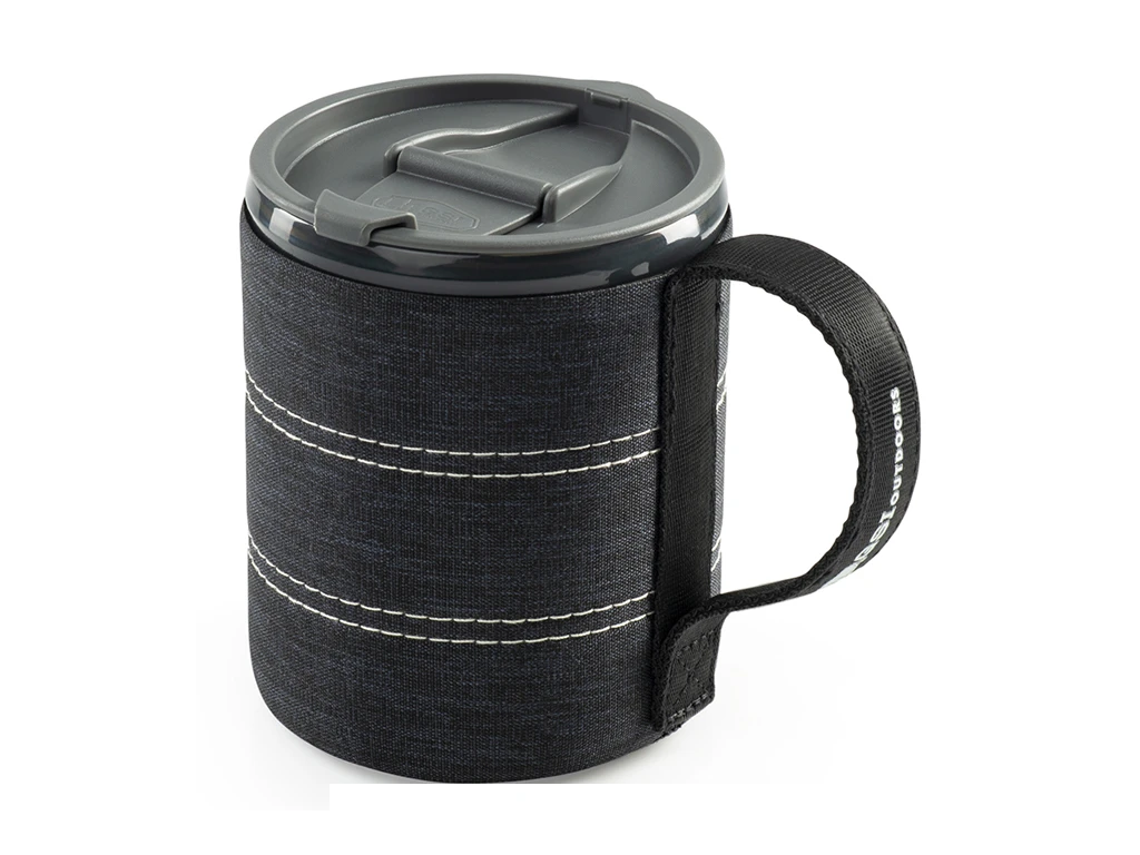 Ľahký hrnček od firmy GSI Outdoors, ktorý je vyrobený zo 100% recyklovateľného polypropylénu. Tento uzatvárateľný hrnček je chránený látkovým obalom.