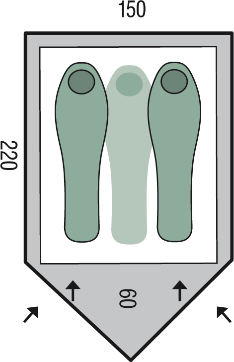Univerzálny ľahký stan pre 2 - 3 osoby, na všetky druhy turistiky, veľmi stabilný pri plnom ukotvení.