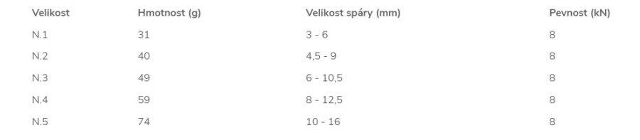 - použitie: skalné lezenie, hakovanie, alpinizmus