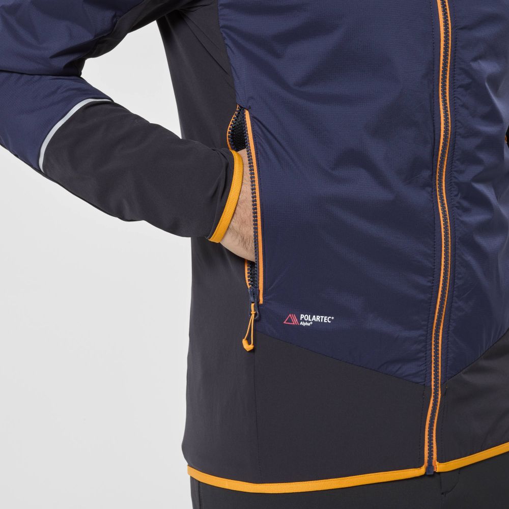 Pánska softshellová bunda na skialpinizmus. Hybridná konštrukcia tejto skialpovej bundy kombinuje elasticitu a odolnosť tkaniny X.C.S. 30 s tepelným komfortom vďaka POLARTEC® ALPHA®. Zahreje vás v kľúčových miestach na tele a zabezpečí úplnú voľnosť pohybu a odvod vlhkosti.