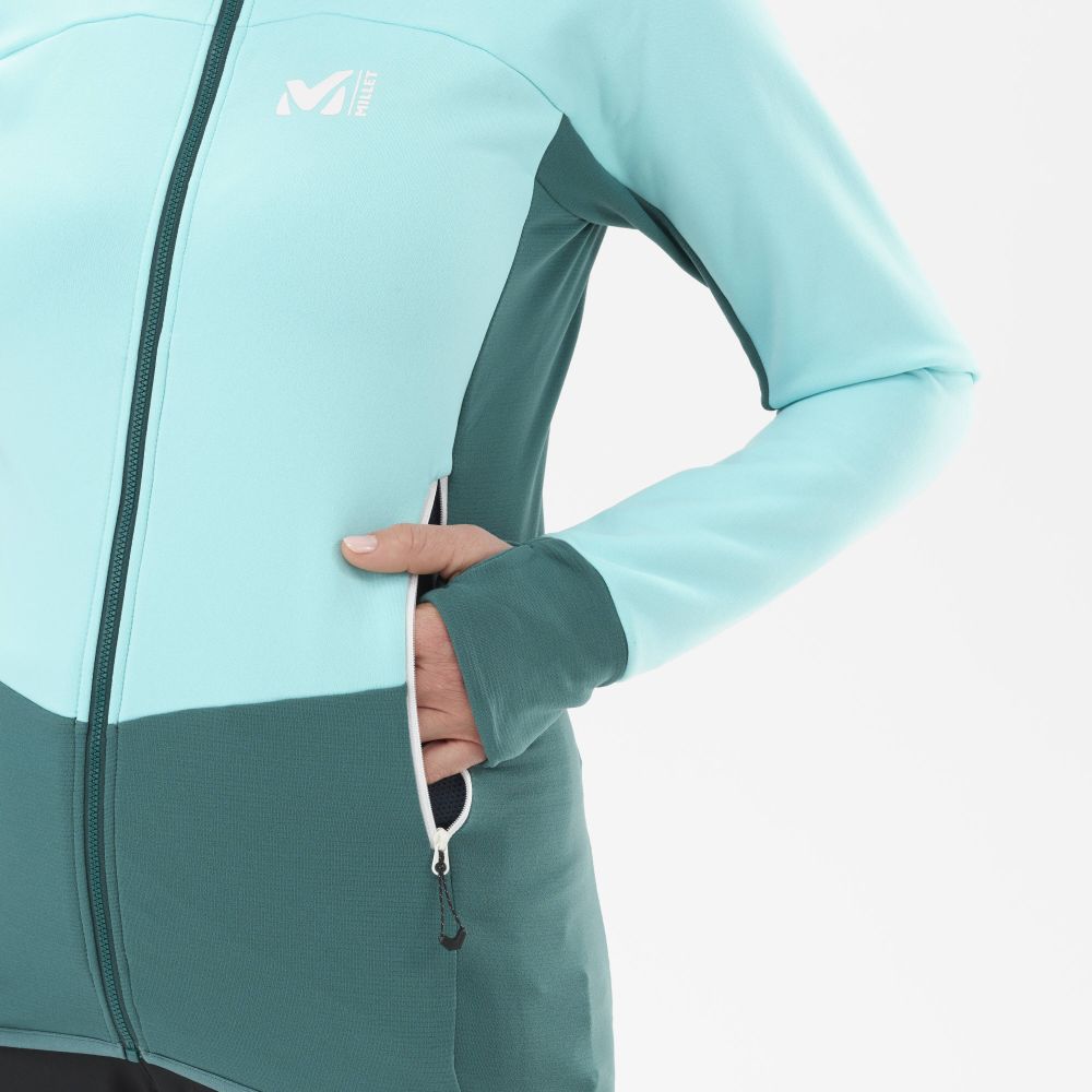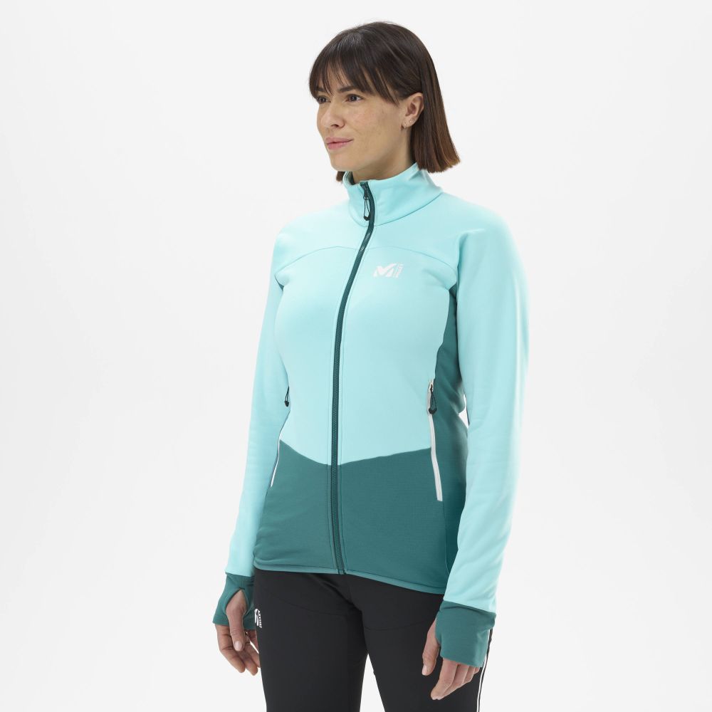 Dámska bunda RUTOR THERMAL vyrobená prevažne z recyklovaných vlákien dokonale odvádza vlhkosť. Je navrhnutá z 2 doplnkových strečových materiálov: jeden teplý a odolný pre tepelný komfort a druhý ľahší štruktúrovaný pre priedušnosť. Vypasovaný strih s otvormi na palce na manžetách, strečový materiál do štyroch strán a raglánové rukávy sú počas nosenia naozaj pohodlné. Má centrálne otváranie na zips a dve bočné vrecká.