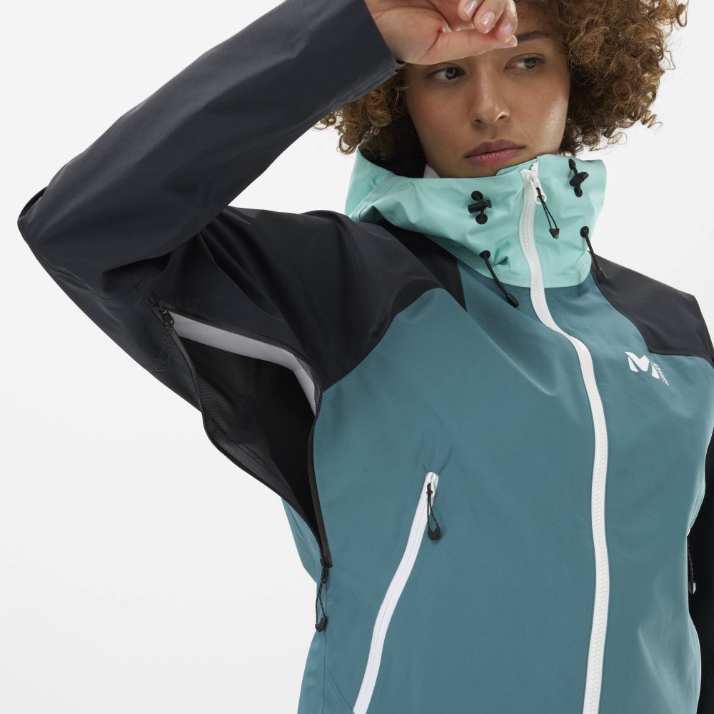 Dámska ľahká a odolná nepremokavá bunda Millet LD K HYBRID GTX s membránou GORE-TEX. Hybridná konštrukcia kombinuje trojvrstvový GORE-TEX na ramenách a rukávoch pre bezkonkurenčnú pevnosť a nepremokavosť tam, kde sú najviac potrebné, s GORE-TEX Paclite® na zvyšku tela pre optimalizáciu ľahkosti (celková hmotnosť 347 g). Nepremokavosť tejto horskej bundy je dokonalá vďaka plne tepelne zataveným švom, vodeodolným zipsom a nastaviteľným povrchovým úpravám. Kapucňa sa prispôsobuje v 3D a má integrovaný šilt a dve vrecká na zips, ktoré vám umožnia mať svoje základné veci v bezpečí.