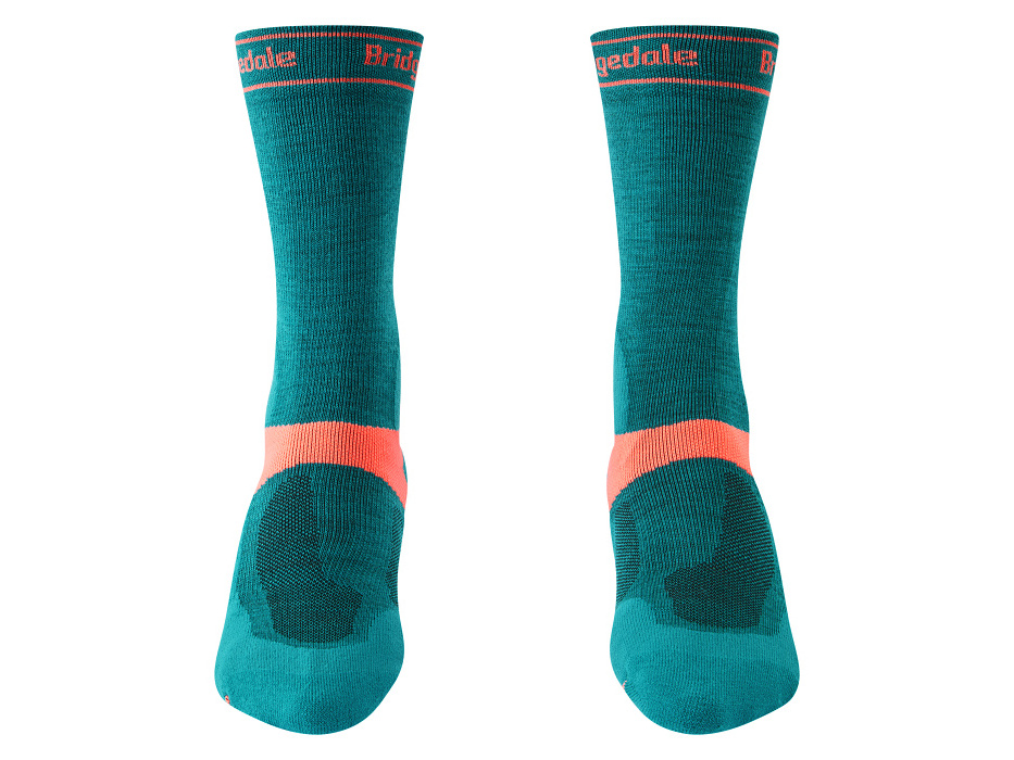 Ponožky určené na cyklistiku. Jarné a jesenné dni na trailoch môžu byť dokonalé. Ale tiež dokonale nevyspytateľné. Dážď príde bez varovania a ľadový vietor ťa zase donúti obliecť jednu vrstvu naviac. Pätnástka bikerov z Peak District sa po dva roky opakovane vydávala do terénu a vracala do sídla Bridgedale so svojimi postrehmi k týmto novým MTB ponožkám pre jarné a jesenné bikovanie. Odhalili pri tom šesť kľúčových problémov, ktoré ľudia v Newtownards museli vyriešiť: hrejivosť, presný proti sklzový strih, vibrácie pod nohami, ochranu Achillovej šľachy, ochranu členkov a asymetrickú konštrukciu, aby v topánkach nedochádzalo k treniu. Riešenie sa našlo a spojením merino vlny a technických vlákien vznikli ďalšie neobvykle odolné a návykové ponožky.