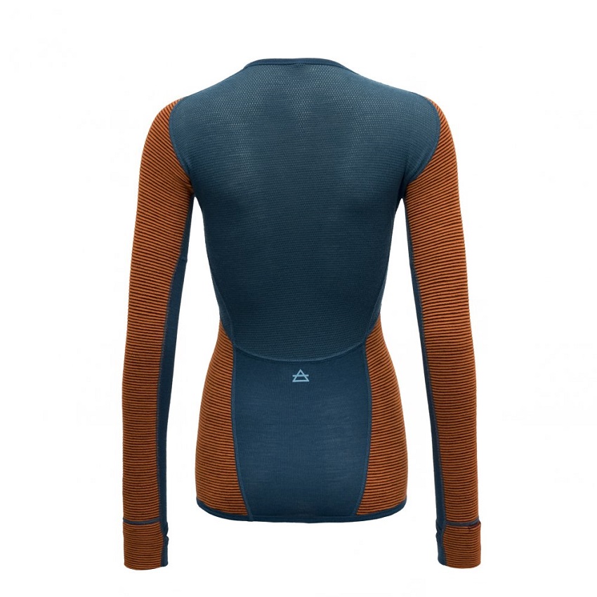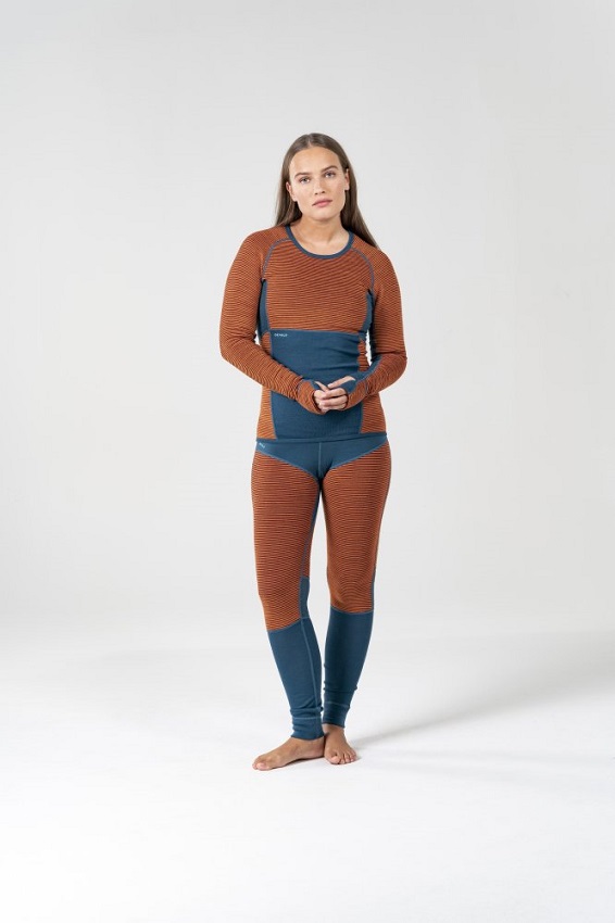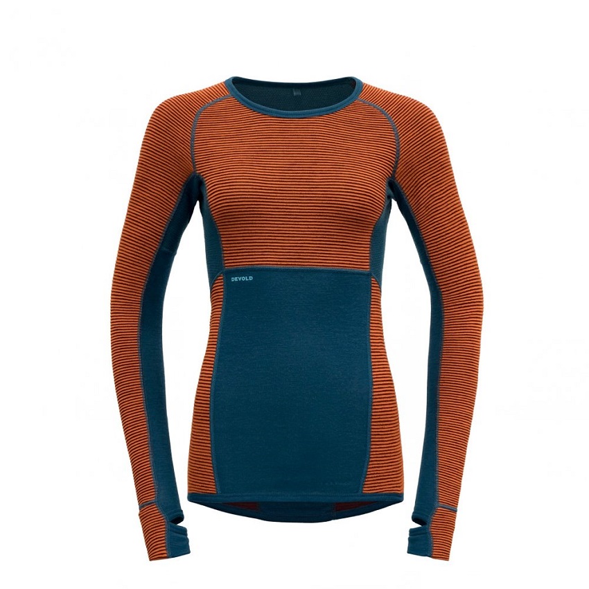Dámske obojstranné funkčné vlnené tričko značky Devold, ktoré je vyrobené kombináciou troch rozdielnych úpletov. Prvá strana má vysoký úplet ku pokožke, ktorý v sebe udržuje viac vzduchu a zvyšuje tým tepelný komfort. Druhá strana je tvorená hladkým úpletom, ktorý zaistí vysokú priedušnosť. Klasický rebrovaný úplet je použitý v teplých oblastiach tela ako je brucho a spodná časť paží. Je veľmi ľahký pri zachovaní tepelno izolačných schopností. Absorbuje vlhkosť a udržuje telo v suchu počas pohybu. Rýchloschnúci sieťovaný úplet zaistí rýchly odvod vlhkosti od tela. Nájdeme ho na najviac potivých častiach tela ako sú chrbát a podpazušie. Tričko využijete pri zimných aktivitách, či už pri zjazdovom lyžovaní, na bežkách alebo skialpe či snowboardingu. Ideálne v kombinácii s nohavicami Tuvegga Sport Air Long Johns Women.