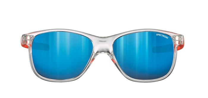 Detské slnečné okuliare Julbo TURN 2 spectron 3 CF, špeciálne navrhnuté pre malé deti, pričom proporcie sú prispôsobené ich tvaru tváre. Sú veselé a sofistikované s farebnými zrkadlovými šošovkami. S maximálnou účinnosťou chránia krehké oči detí. Cat. 3 polykarbonátové šošovky (miera priepustnosti viditeľného svetla: 12 %) s farebnou zrkadlovou vrstvou (Color Flash): zlepšuje filtráciu viditeľného svetla aplikáciou zrkadlového efektu na šošovku. Viacúčelové šošovky vhodné na všetky použitia.