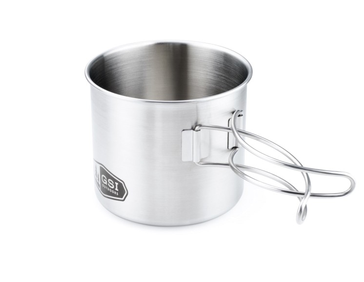 Odolný, ale stále ľahký nerezový hrnček so skladateľnou rúčkou. Navrhnutý tak, aby šiel nasadiť cez štandardnú litrovú fľašu. Skladacie madlo ďalej šetrí priestor.