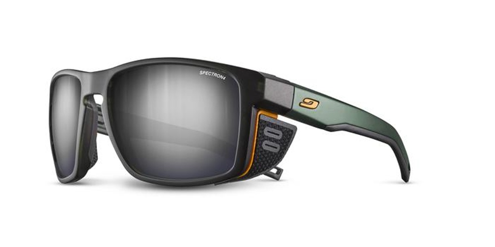Okuliare Julbo Shield Spectron 4 sú modelom vybaveným šošovkami štvrtej kategórie, ktoré prepúšťajú iba 5 % viditeľného svetla. Okuliare sa preto dobre osvedčia na vysokohorských expedíciách. Sú moderný model, ktorý sa dokonale prispôsobí tvaru tváre. Zakrivené ušnice sú zakončené mäkkým a priľnavým materiálom. Vďaka tomu okuliare zostávajú na hlave stabilné aj pri dynamických pohyboch vykonávaných počas lezenia alebo trekingu. Podobný materiál bol použitý aj na nosovú podložku, ktorá má veľký vplyv na pohodlie okuliarov, najmä počas dlhodobého používania. Ďalej sú vybavené odnímateľnými bočnými štítmi. Model má tiež vetraný rám a pripojený silikónový pásik, ktorý možno pripevniť k ušným košíčkom.