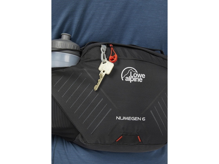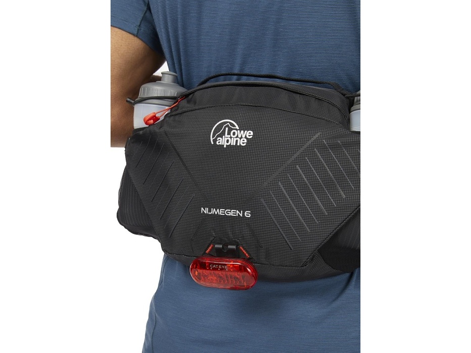 Lowe Alpine Nijmegen 6 - je turistický model, ktorý skvele poslúži na celodennej túre. Je pomenovaná podľa najväčšej prechádzky na svete, ktorá sa koná v Holandsku - Nujmegan. Nízkokapacitná, odolná konštrukcia pojme len najnutnejšie príslušenstvo potrebné na celodennú turistiku. Je vyrobená zo syntetických tkanín a skombinovaná s mnohými praktickými riešeniami pre pohodlie a prispôsobenie. To zabezpečuje široký a nastaviteľný pás s pohodlnou prackou. K dispozícii sú aj ďalšie bočné vrecká chránené zipsami na nevyhnutné veci. Súčasťou turistického bedrového vaku sú aj 2 malé fľaše umiestnené v elastických špeciálnych vreckách. Dizajn dopĺňajú reflexné prvky a pútko, na ktoré môžete pripevniť LED svetlo.