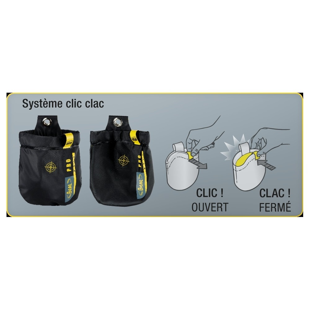 Kompaktné pracovné vrecko Beal Genius je vhodné na uloženie spojovacieho materiálu (skrutiek, matiek, atď.) a drobného náradia. Vrecko s Clic-Clac systémom uzatvárania zamedzuje strate materiálu a nevyžaduje tak prílišnú pozornosť nad vakom pri pohybe vo výške. Ďalším významným doplnkom je magnetický terčík na odloženie aktuálne používaného nástroja alebo skrutky.