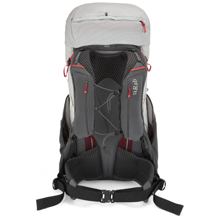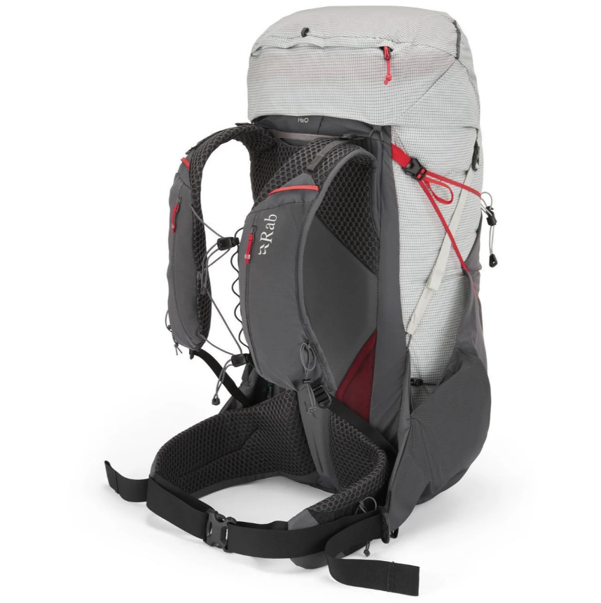 Ultraľahký, ale zároveň veľmi odolný batoh na dlhé treky Rab MUON s objemom 50 l. Má prepracovaný chrbtový systém a váhu pod 1 kg, čo oceníte na viac dňových/týždňových túrach, kde si všetko potrebné nesiete so sebou a preto počítate každý gram. Vďaka tkanine Spectra® Ripstop, ktorá je odolná voči oderu, pretrhnutiu aj UV žiareniu je batoh aj pri nízkej váhe naozaj odolný. Spectra® vlákna majú pri rovnakej hmotnosti 15x vyššiu pevnosť ako oceľ. V spojení s Cordurou neskutočne odolnú tkaninu. Batoh má priliehavý chrbtový panel TRI-FLEX™ s tvarovanou bedrovou vypchávkou a podporným bedrovým pásom, ktorý rozloží ťarchu batohu na celé telo. Prináša úplnú slobodu pohybu, dokonca aj pri nosení ťažkých nákladov