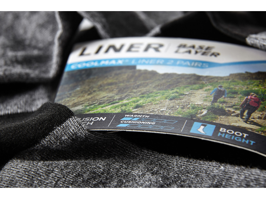 Ponožky na bežné nosenie alebo ako základná vrstva pod iné ponožky. 2 páry v balení. Nástupca modelu Coolmax Liner. Klasická výška.