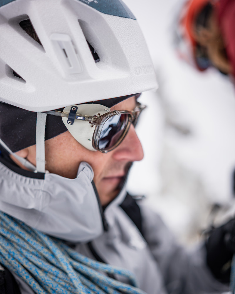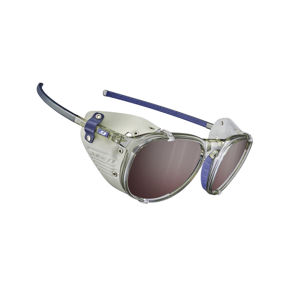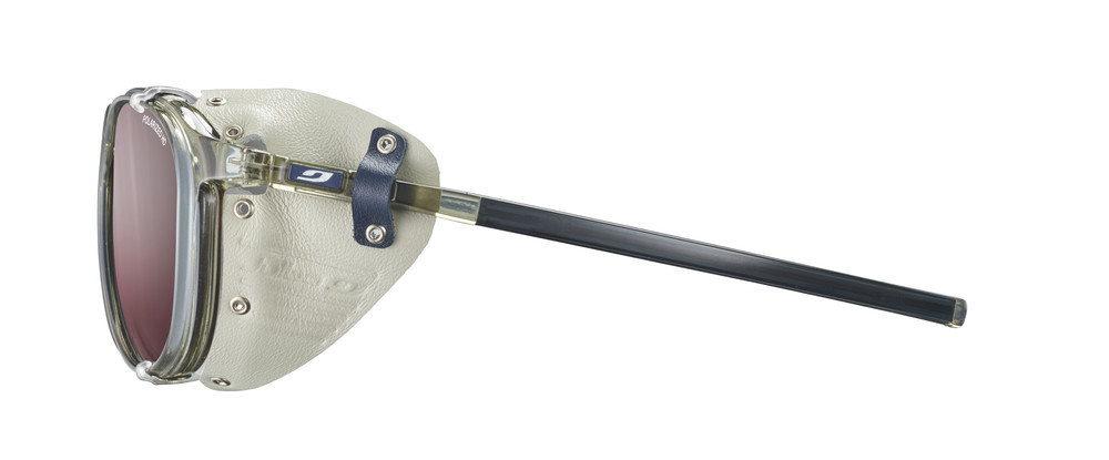 - odnímateľné kožené bočné štíty: špeciálna vlastnosť ľadovcových slnečných okuliarov, kožené bočné štíty chránili oči generácií horolezcov a teraz vytvárajú nezameniteľný vintage vzhľad