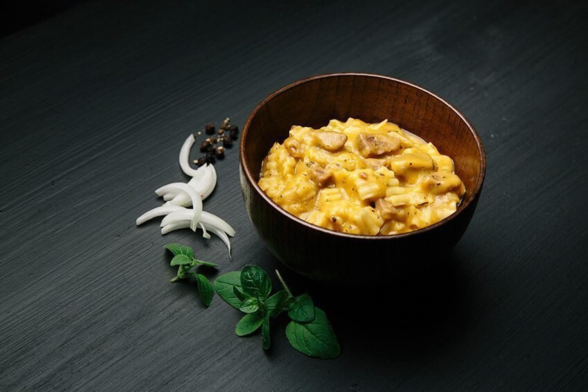 - Vyčkajte približne 8 minút, znova premiešajte a pokrm je pripravený. Pokiaľ vám príde príliš hustý, pridajte vodu.