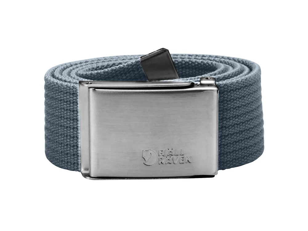 Opasok Fjällräven Canvas je 4 cm široký s jednoduchou kovou prackou, ktorý skvele doplní akékoľvek nohavice.