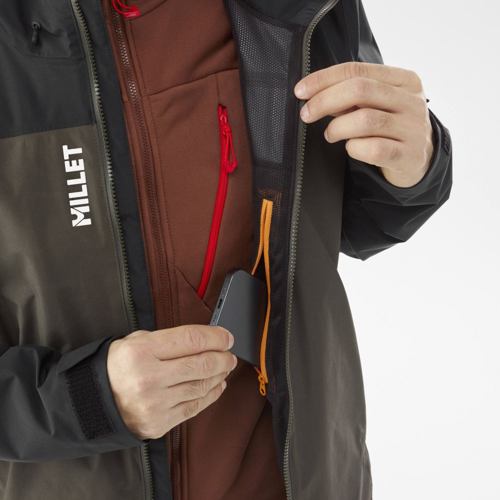 GORE-TEX ePE 2L RECYCLED, 100% Recyklovaný polyester, priedušnosť: RET < 13m².Pa/W, nepremokavosť: 28 000 mm, DWR vodeodolná úprava bez PFC; Podšívka: sieťovina, 100% Polyester