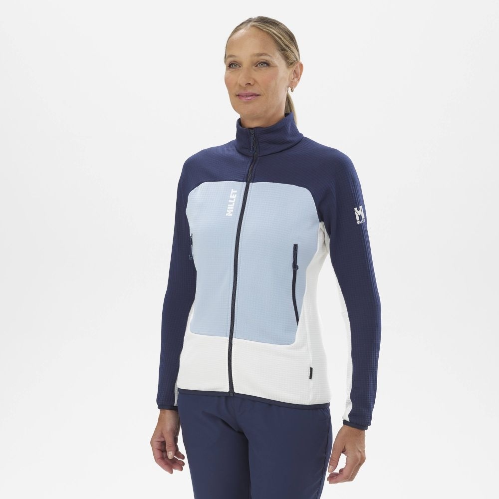 Technická dámska flisová bunda s novým logom Millet určená pre horské aktivity v chladnom počasí, ako je horolezectvo, využíva nový materiál Polartec® Power Grid™ vyrobený z recyklovaných vlákien, aby sa obmedzil jeho dopad na životné prostredie. Reliéfna mriežková štruktúra na vnútornej strane optimalizuje prísun tepla a umožňuje veľmi rýchly únik telesnej vlhkosti, čím poskytuje trvalý suchý komfort pri najintenzívnejších aktivitách. Vypasovaný strih so stojačikom a elastickými zakončeniami v spodnej časti a na manžetách udržiava teplo a umožňuje jednoduché nosenie tohto dámskeho fleecu pod nepremokavou bundou. Tento horský odev dopĺňajú tri vrecká na zips.