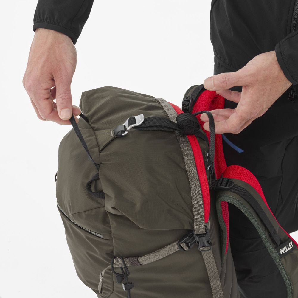 Horolezecký batoh Millet KAMET 25 je určený na celodenné výstupy. Batoh je vyrobený z odolného TPU nylonu so zosilneným dnom, materiál vydrží aj odieranie o kamene a skaly. Je vodeodolný a určený na celoročné používanie. Tento technický lezecký batoh ti umožní nosiť všetko potrebné vybavenie: lano, cepín a dokonca aj lyže.