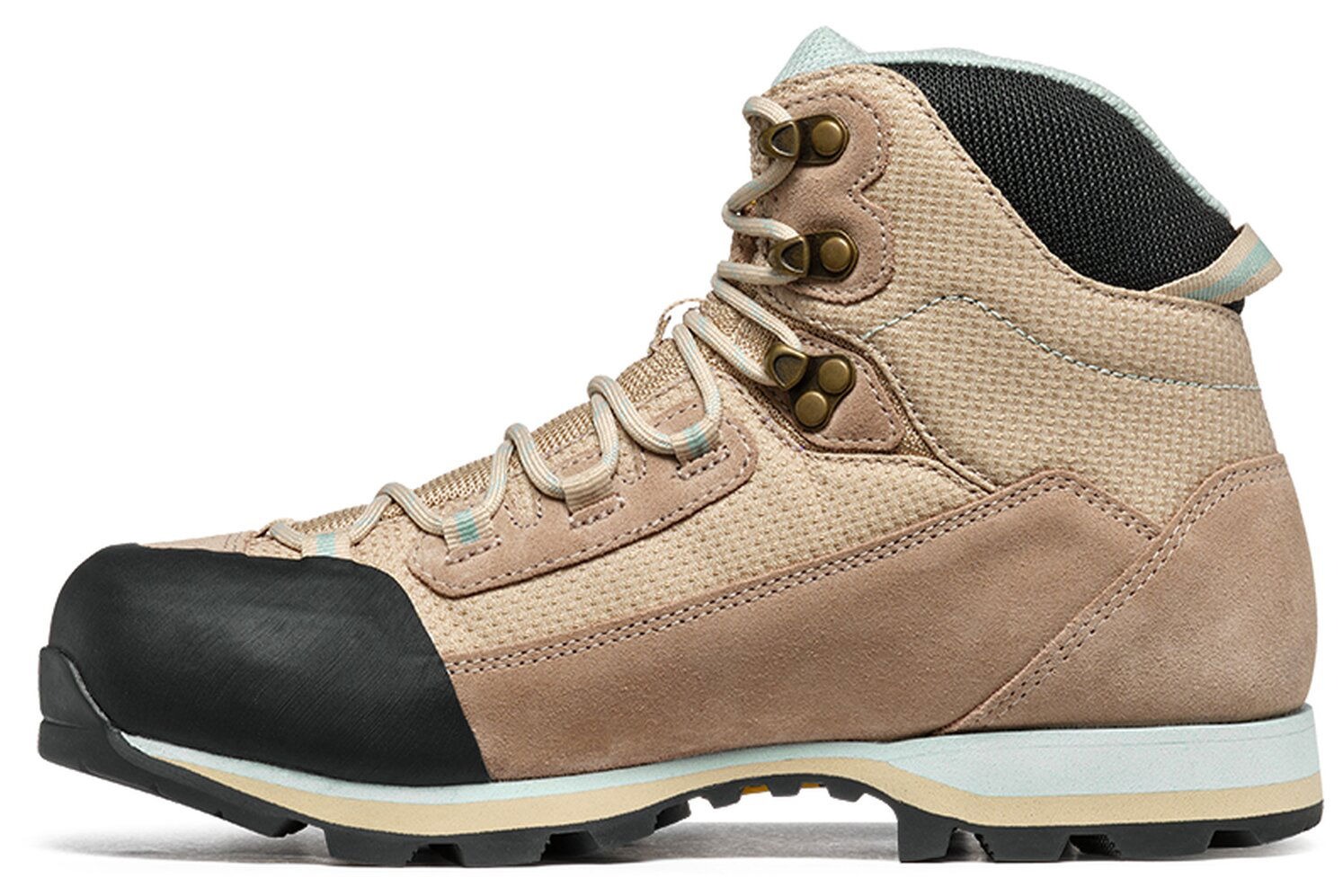 - Vodeodolný a priedušný zvršok z nubuku a textilu, ktorý chráni nohu pred vlhkosťou a odreninami.