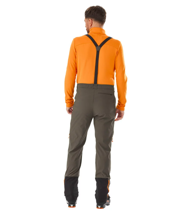 Pánske športové nohavice vhodné na skialp, bežky aj zimnú turistiku. Ich vodoodpudivý strečový materiál Bi-FaceTM zaisťuje dobrú izoláciu a zároveň zostávajú priedušné. Počas aktivity je možné rozopnúť prídavné ventilačné zipsy na stehnách. Predtvarované kolená a rozkrokový panel nám umožňujú predĺžiť pohyb s úplnou ľahkosťou. Otváracie zipsy a gamaše na suchý zips nám uľahčujú obúvanie topánok. V spodnej časti nohavíc sú výstuže ktoré zvyšujú ich odolnosť. Ideálne na skialp, bežky ale aj na všetky zimné vysokohorské aktivity.
