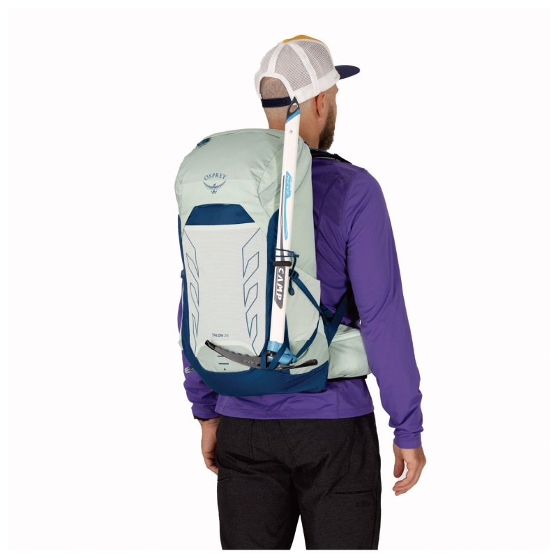 Turistický batoh Osprey Talon 26 je ponuka americkej značky Osprey určená všetkým nadšencom turistiky. Tento model bol vyrobený z odolnej a mimoriadne ľahkej nylonovej tkaniny. Vďaka výraznému zníženiu hmotnosti modelu ho ocenia aj tí, pre ktorých je dôležité nosiť čo najmenšiu hmotnosť. Má nastaviteľný nosný systém AirScape™ z mäkkej peny, ktorý zabezpečuje správne nosenie a tiež dobrú cirkuláciu vzduchu. Ramenné popruhy a bedrový pás tohto batohu sú tiež vystlané penou. Táto konštrukcia umožňuje správne prispôsobenie a tiež znižuje riziko podráždenia pokožky. Pri tomto modeli máte možnosť nastaviť výšku panelu zavesenia ramenných popruhov tak, aby vyhovoval vašej výške. Batoh má vstrekovaný rám z HDPE. Tento model má aj bedrový pás, ktorý umožňuje nastaviť ho tak, aby sa správne prispôsobil vášmu pásu. Okrem toho má batoh hrudný popruh, ktorý je nastaviteľný horizontálne aj vertikálne. Špeciálne stabilizačné popruhy na ramenách tiež zabezpečujú, že model počas túry dobre sedí. Model je vyrobený z odolnej a ľahkej recyklovanej nylonovej tkaniny.