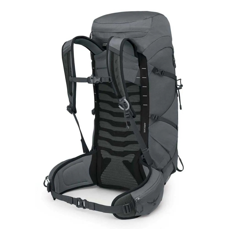Má jednu hlavnú priehradku a prístup k nej z hornej časti. Hlavná priehradka je zaistená chlopňou upevnenou dvoma prackami. Nachádza sa na nej vonkajšie vrecko na zips a vnútorné vrecko zo sieťoviny. Batoh má vyhradený priestor pre hydratačný systém. Na prednom paneli nájdete elastické sieťované vrecko na špinavé alebo mokré oblečenie. Ďalšie dve elastické vrecká sa nachádzajú na bokoch. Tento model má aj vrecká na bedrovom páse – ich mäkké polstrovanie dobre ochráni vaše okuliare pred poškriabaním. Batoh Osprey má tiež pútka na cepín a bočné kompresné popruhy. Pre značku Osprey je charakteristický inovatívny systém nosenia trekingových palíc s názvom Stow-on-the-Go™. Vďaka tomu ich môžete pohodlne pripevniť na jeden z ramenných popruhov, takže k nim budete mať vždy ľahký a rýchly prístup.