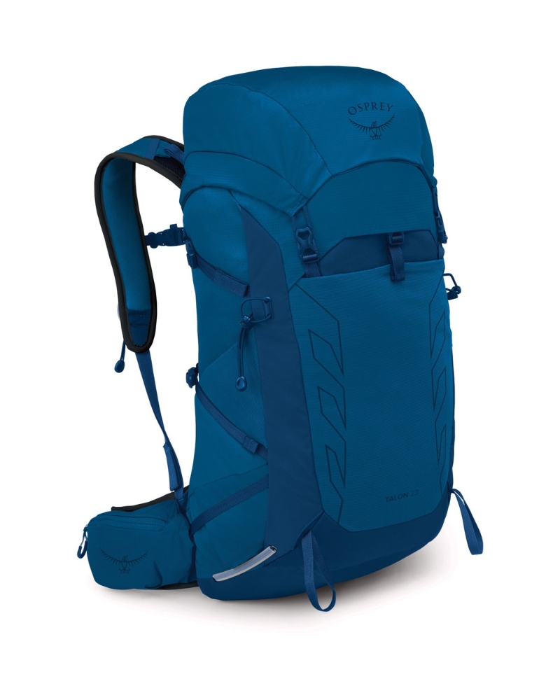 Turistický batoh Osprey Talon 33 ocenia milovníci rýchlej turistiky v horách. Hmotnosť prenášaného vybavenia je prvoradá. Vďaka tomu, že je model vyrobený z extrémne ľahkej nylonovej tkaniny Robic®, sa hmotnosť batohu výrazne znížila. Materiál Robic® použitý na výrobu batohu sa vyznačuje nielen nízkou hmotnosťou, ale aj odolnosťou. Navyše bol vyrobený z recyklovaných materiálov. Materiál neobsahuje škodlivé PFC a bol vyrobený s ohľadom na životné prostredie, čo potvrdzuje certifikát bluesign®. Má nastaviteľný nosný systém AirScape™ vyrobený z mäkkej peny, ktorý dobre sedí a zaisťuje dobrú cirkuláciu vzduchu. Ramenné popruhy a bedrový pás batohu sú polstrované penou. Konštrukcia umožňuje správne prispôsobenie a znižuje riziko podráždenia pokožky.  Máte možnosť nastaviť výšku panelu zavesenia ramenného popruhu a prispôsobiť ho svojej výške. Má vstrekovaný rám z HDPE, bedrový pás, ktorý vám umožní správne prispôsobenie vášmu pásu. Okrem toho má hrudný popruh, ktorý je horizontálne aj vertikálne nastaviteľný. Špeciálne stabilizačné popruhy na ramenách zaisťujú, že batoh počas túry správne sedí. Model je vyrobený z pevnej a ľahkej nylonovej tkaniny Robic®. To sa prejavuje v nižšej celkovej hmotnosti, takže výrobok ocenia aj nadšenci rýchlej turistiky.