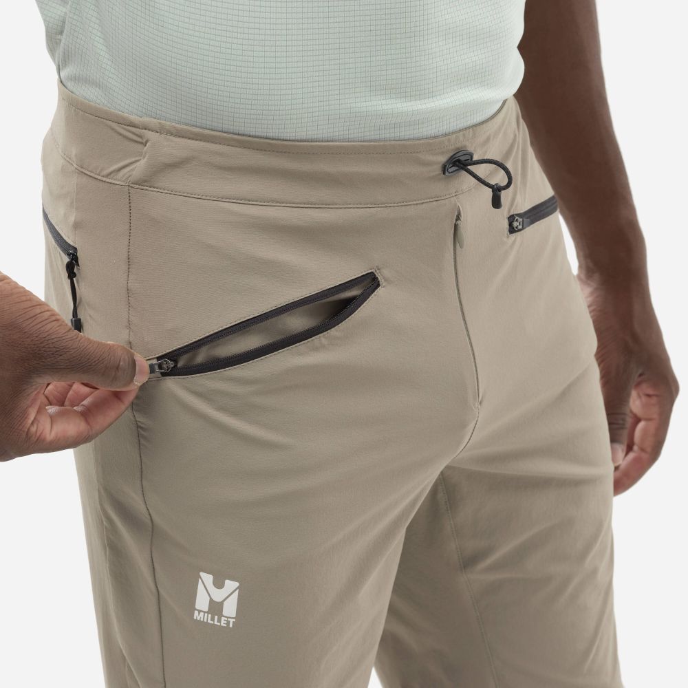 Ľahké elastické šortky Millet FUSION XCS z veľmi odolného materiálu X.C.S. určené na turistiku a lezenie. Šortky sa ľahko nosia vďaka pružnému a veľmi odolnému materiálu, ako aj elastickému pásu nastaviteľnému pomocou šnúrky. Sú vodoodpudivé a vetruvzdorné, prispôsobia sa horským podmienkam a vďaka silnej XCS tkanine sú odolné aj voči oderu kameňom. Veľmi pohodlné s plochým pásom a strečovým materiálom. Tieto pánske trekingové šortky sú doplnené tromi vreckami na zips.