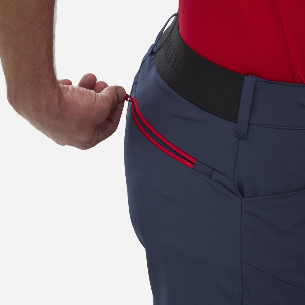 Pánske turistické šortky Millet na letné treky. Nohavice sú vyrobené z ľahkej strečovej tkaniny Drynamic, majú športový strih a vďaka elastickému pásu sú veľmi pohodlné a nebránia v pohybe. Majú štyri vrecká, z toho 2 zipsové.