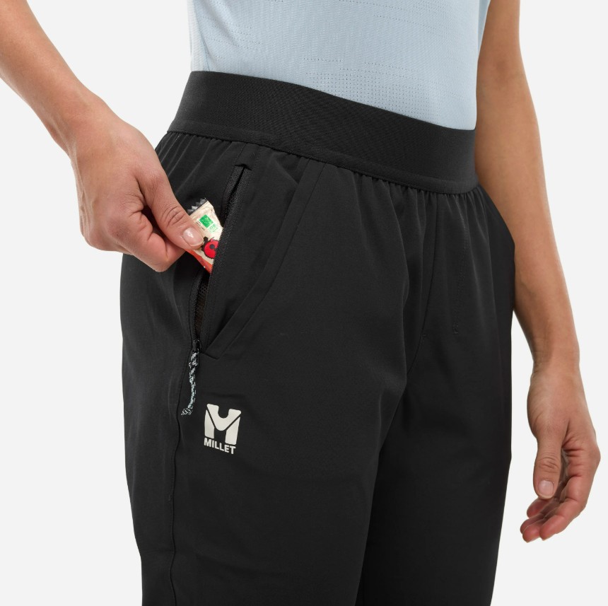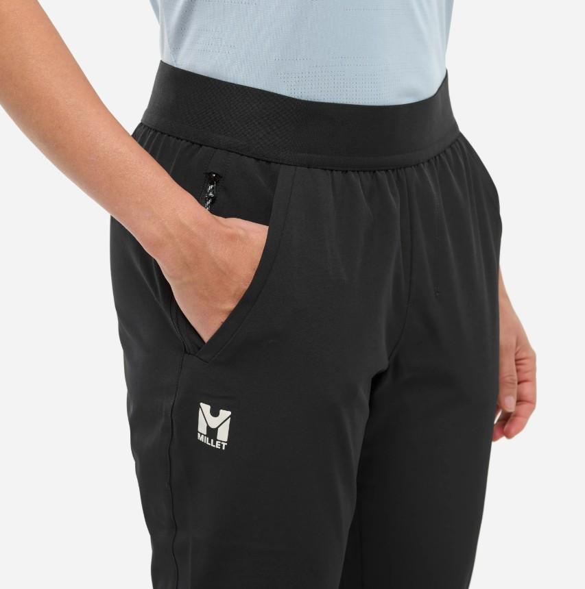 Dámske turistické nohavice Millet na letné treky. Nohavice sú vyrobené z ľahkej strečovej tkaniny Drynamic, majú športový strih a vďaka elastickému pásu sú veľmi pohodlné a nebránia v pohybe. Majú štyri vrecká, z toho 2 zipsové.