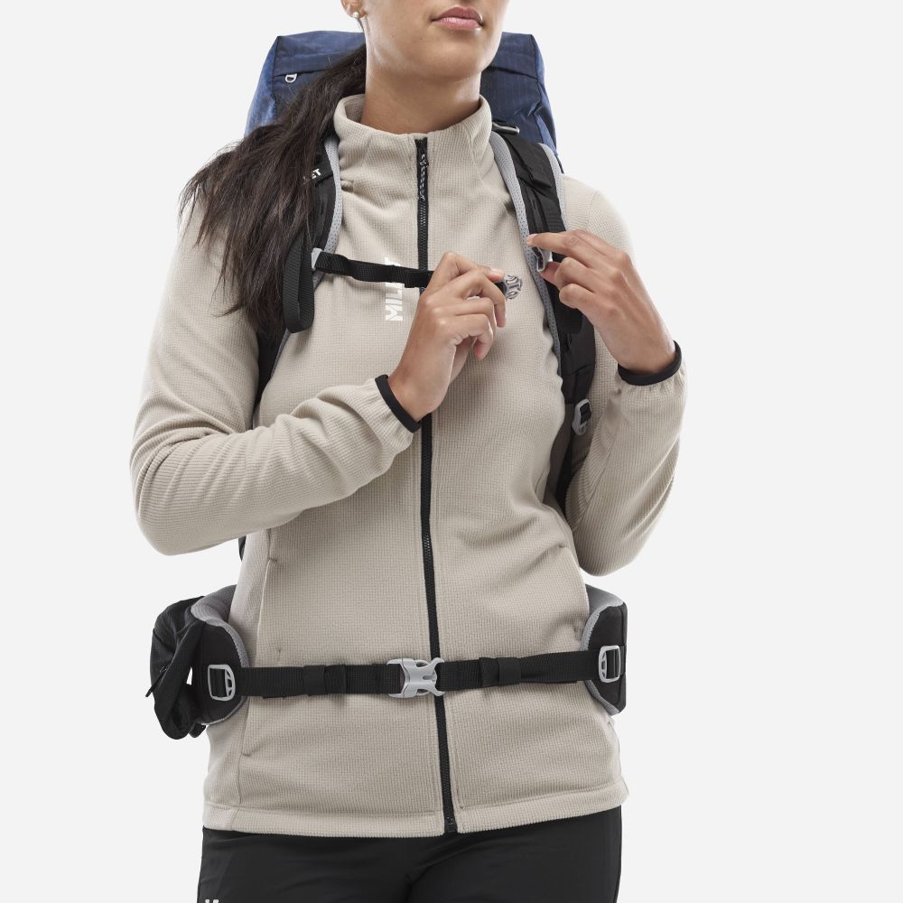 Batoh môžete zväčšiť až do objemu 60 litrov. Má ergonomické ramenné popruhy a chrbtový systém prispôsobený ženskej postave, vďaka čomu perfektne sadne na chrbte a bez problémov človek unesie aj ťažší náklad. Súčasťou batohu je aj nepremokavý kryt. Strečové vrecko na prednej časti batohu je ideálne na odloženie bundy alebo fleece bundy, ktorú budete mať v prípade náhlej zmeny počasia vždy po ruke. Batoh je vyrobený zo 100% recyklovanej tkaniny a využíva odolné kovové pracky.
