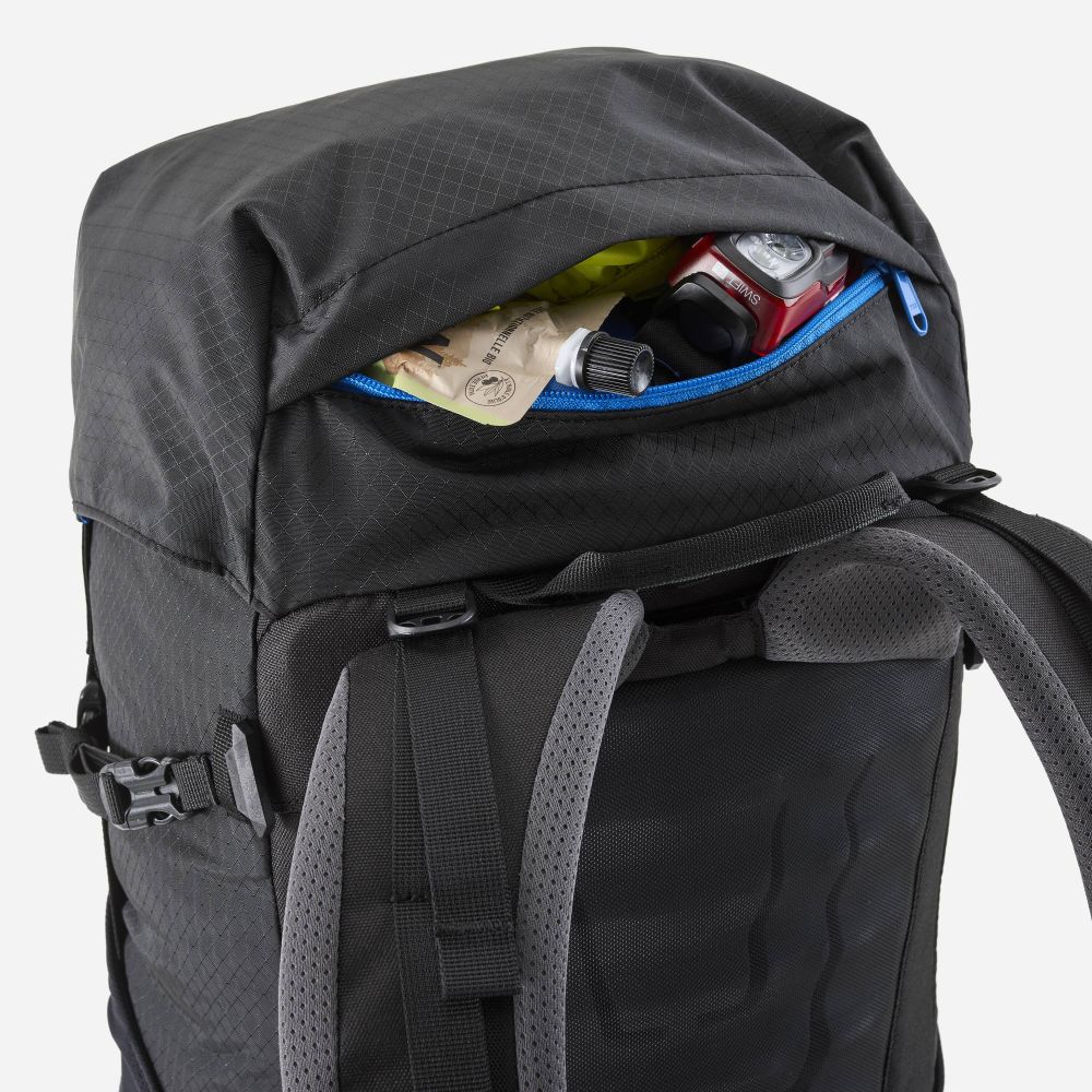 Batoh UBIC 40 ma ergonomické ramenné popruhy vďaka čomu perfektne sadne na chrbte a bez problémov človek unesie aj ťažší náklad. Súčasťou batohu je aj nepremokavý kryt. Strečové vrecko na prednej časti batohu je ideálne na odloženie bundy alebo fleece bundy, ktorú budete mať v prípade náhlej zmeny počasia vždy po ruke. Batoh je vyrobený zo 100% recyklovanej tkaniny a využíva odolné kovové pracky.