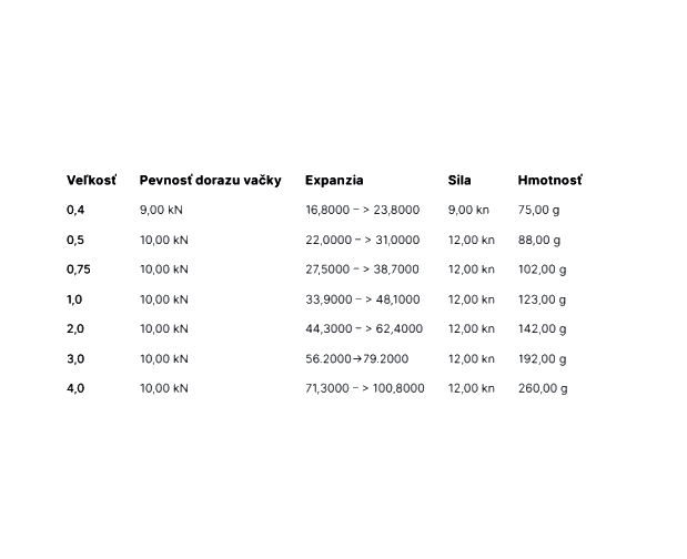 - nosnosť (zdvojená/predĺžená slučka): 12/10 kN