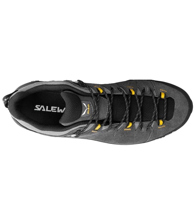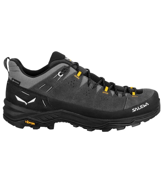 Pánske turistické topánky Salewa ALP TRAINER 2 GTX vhodné na celodenné túry v akomkoľvek teréne s bezpečnou priľnavou podrážkou Vibram® a vodeodolnou, priedušnou membránou GORE-TEX® Extended Comfort. Robustný semišový zvršok o hrúbke 1,6 mm má ochrannú okopovú gumu 360 ° dookola proti oderu v skalnatom teréne. Vylepšená konštrukcia je o 15% ľahšia a flexibilnejšia ako pôvodná verzia a zaisťuje pohodlné nosenie. Vyskúšaná a otestovaná v talianskych Dolomitoch (Monti Pallidi), je turistická a trekingová obuv s nízkym strihom, ktorá je určená pre väčšie pohodlie pri náročnej horskej prevádzke počas dlhých horských dní.