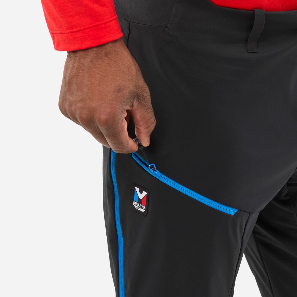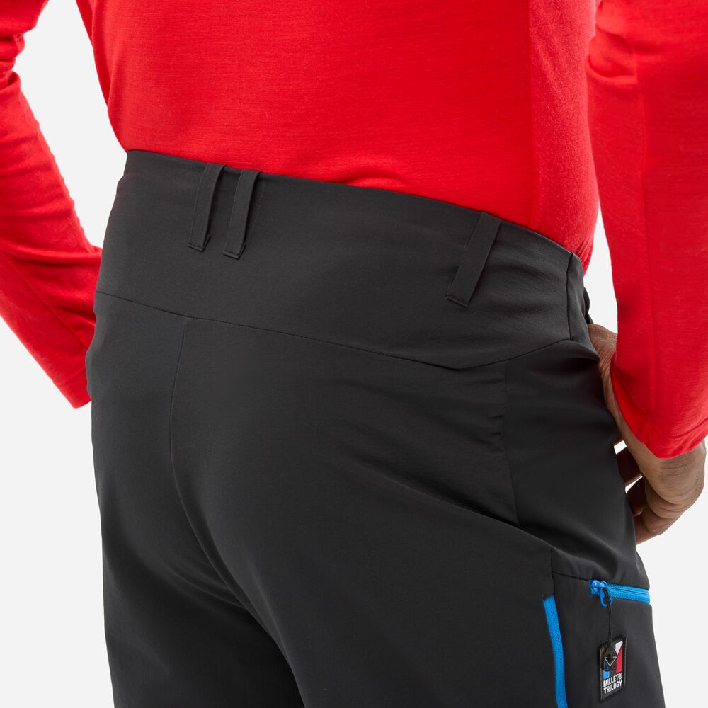 Vysoký, ochranný chrbát je pohodlný a má plochý pás s pútkami na opasok. Keď sa naozaj namáhame, môžeme otvoriť dva bočné vetracie otvory na zips v hornej časti nohavíc. Dve vrecká s klinom nám umožňujú mať potrebné veci po ruke, aj keď máme na sebe horolezecký sedák. Tieto univerzálne horské nohavice s charakteristickým dizajnom Trilogy sú ideálne aj na náročné lyžiarske výlety. Zosilnené manžety sa dajú pomocou zipsov a patentiek prispôsobiť lyžiarskym topánkam.