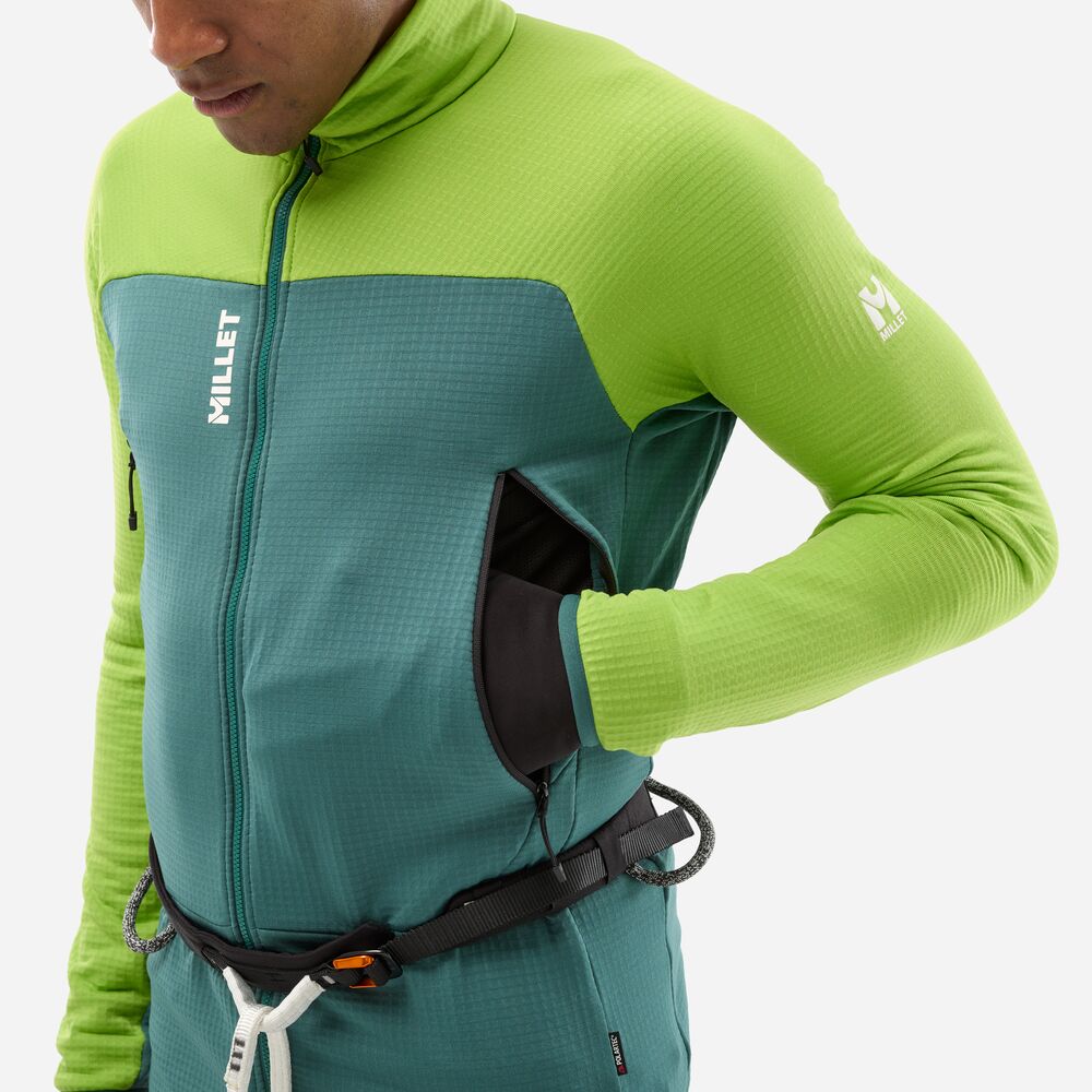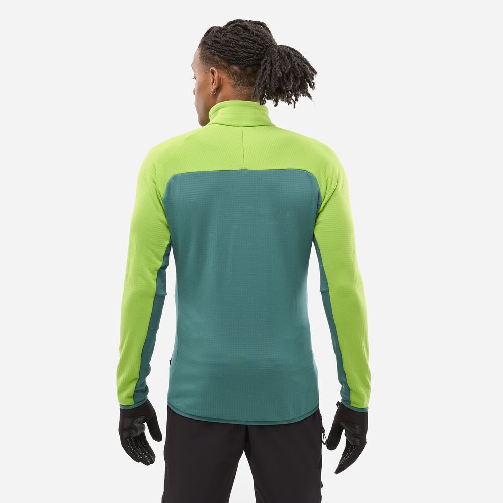 Flísová mikina pre mužov ponúka optimálny pomer objemu a tepla vďaka materiálu Polartec® Power Grid™. Vyrobená z recyklovaných vlákien, na vnútornej strane má mriežkovú štruktúru v reliéfe, ktorá maximalizuje prísun tepla bez zvýšenia hmotnosti a urýchľuje odvod vlhkosti. Voľnosť pohybu podporuje elastický materiál a raglánová konštrukcia rukávov, zatiaľ čo bezšvové pásy pod pažami zabraňujú odieraniu. Má dve dobre prístupné vrecká.