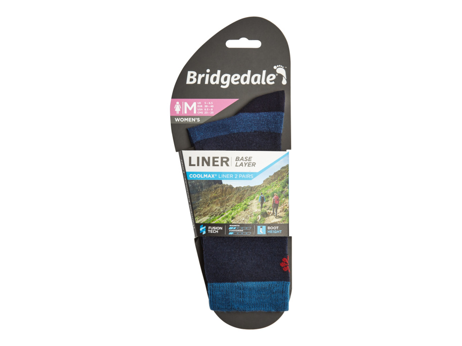 Tenké mestské ponožky Bridgedale COOLMAX LINER W. Spoznávanie mesta, dlhé pracovné jednanie alebo rýchly výlet do prírody. Nenápadná farba týchto tenkých ponožiek je na takéto situácie ako stvorená. A pretože odvádza pot od pokožky, môžete ich použiť ako základnú vrstvu pod lyžiarske alebo trekové ponožky, kde sa postarajú o suché a čisté chodidlá, pri extrémnej záťaži.