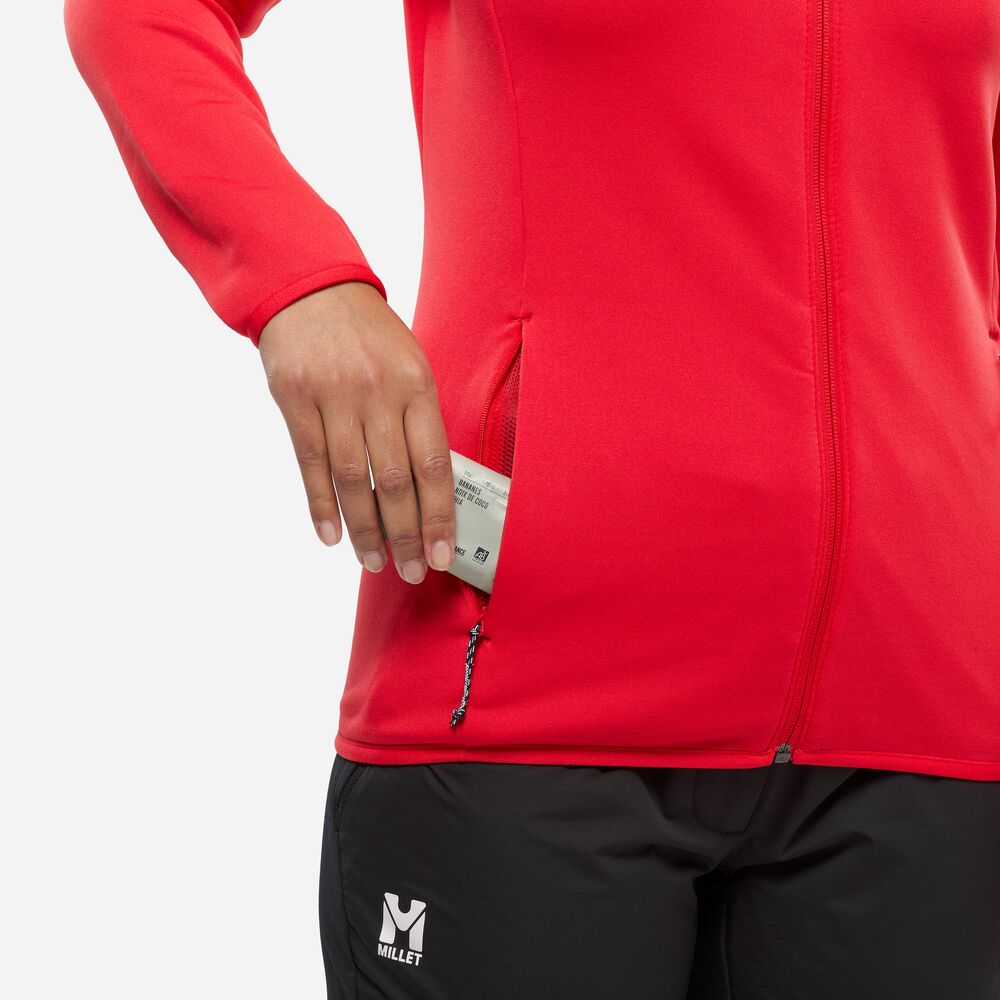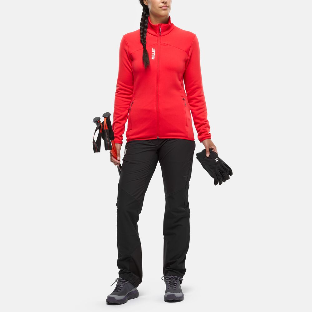 Dámska flisová bunda SENECA je ideálna pre horské športy vo veľmi chladnom prostredí. Česané vnútro je mimoriadne teplé a športový strih zaisťuje dokonalé krytie. Bunda ma elastický lem a šikmé manžety vďaka čomu dobre drží na svojom mieste aj pri aktívnom pohybe. Mikina je ušitá z talianskej tkaniny Technostretch, vyrobenej z 88 % recyklovaného polyesteru a 12 % elastanu, vďaka čomu je dosť strečová a šetrná k životnému prostrediu.