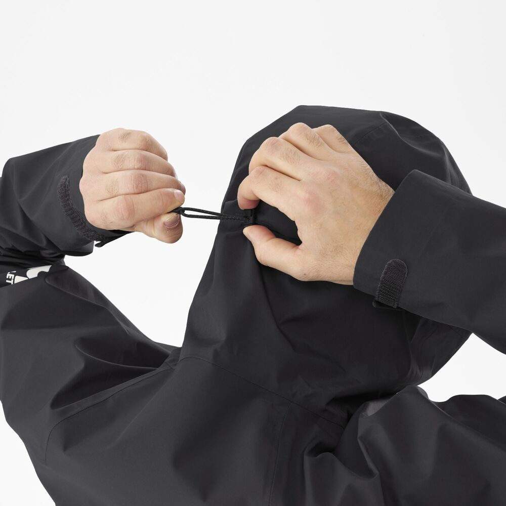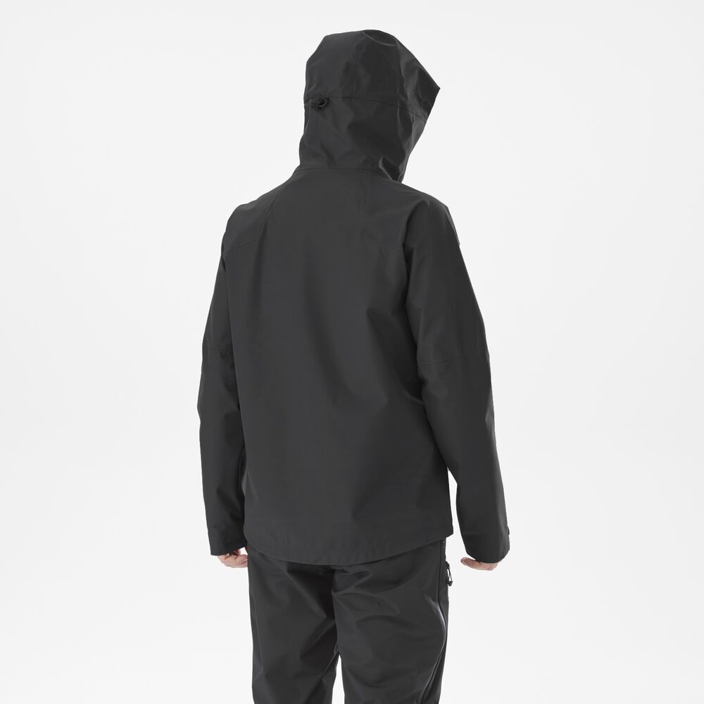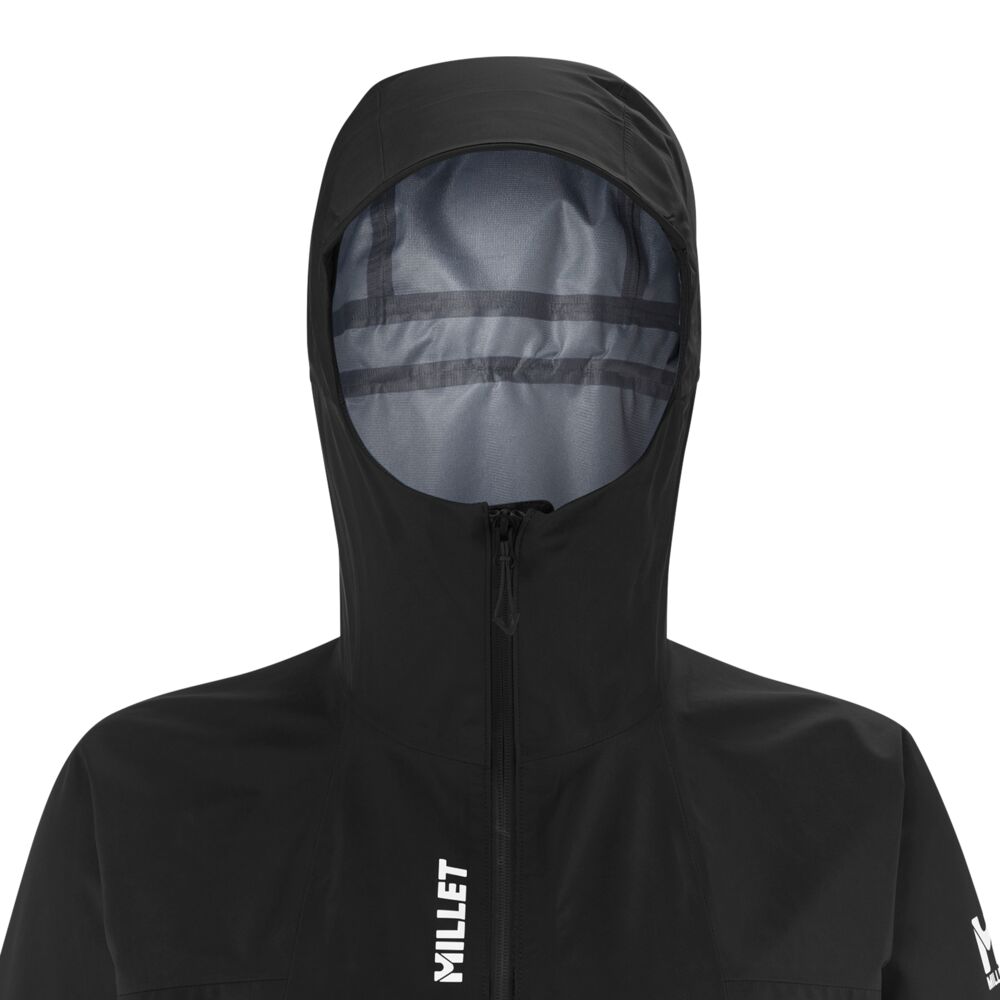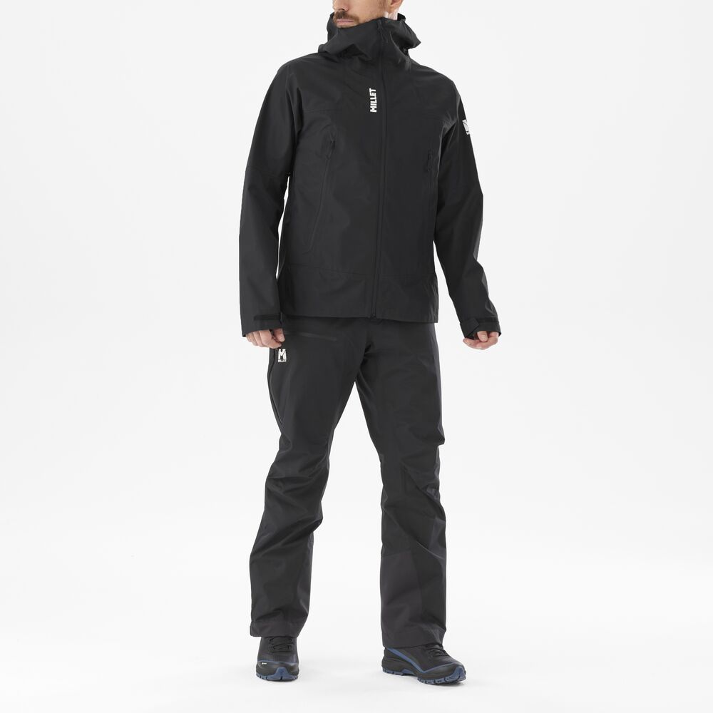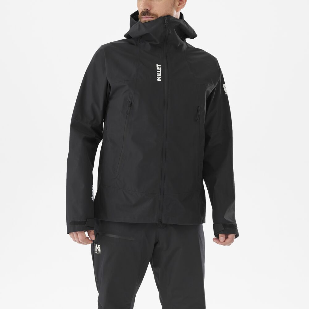 Keď začíname túru, fúka silný vietor. Obliekame si trojvrstvovú bundu GORE-TEX ePE. Jej nová nepremokavá membrána je ešte účinnejšia proti živlom a zároveň znižuje dopad na životné prostredie. Upravíme kapucňu, utiahneme lem a zapneme manžety pomocou suchých zipsov. Vďaka aktívnemu strihu a raglánovým rukávom máme dostatok voľnosti pohybu. Bundu možno kombinovať s horolezeckým postrojom a rukavice môžeme vytiahnuť z dvoch horných vreciek na zips. Keď stúpame strmšie, otvoríme vetracie otvory v podpazuší, aby sme regulovali teplo.
